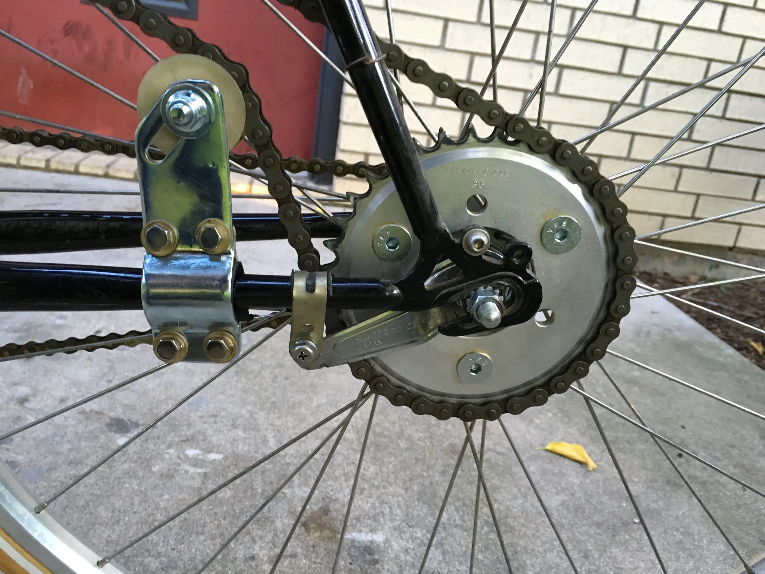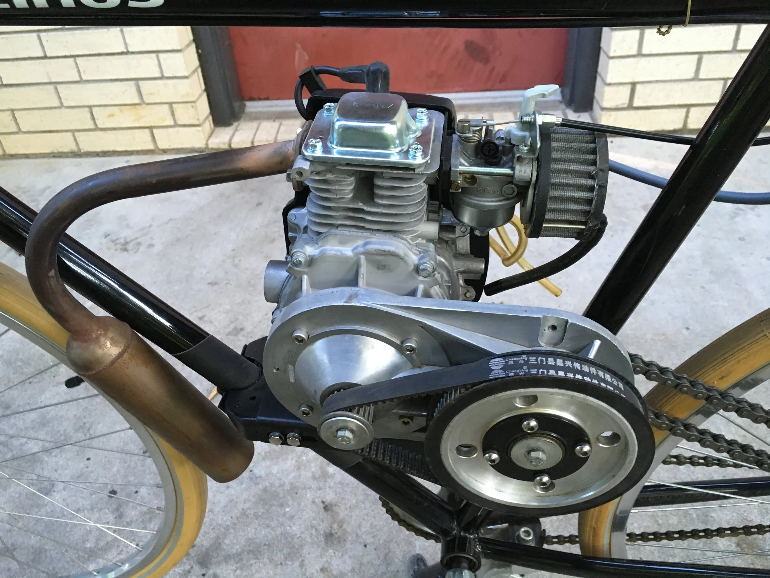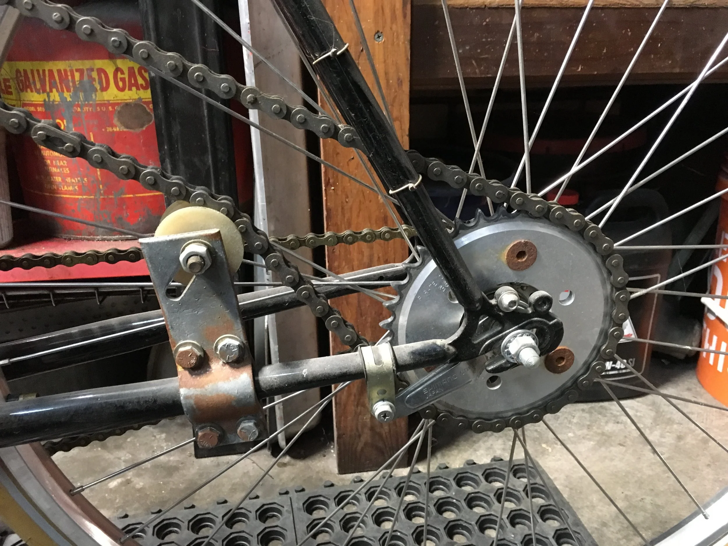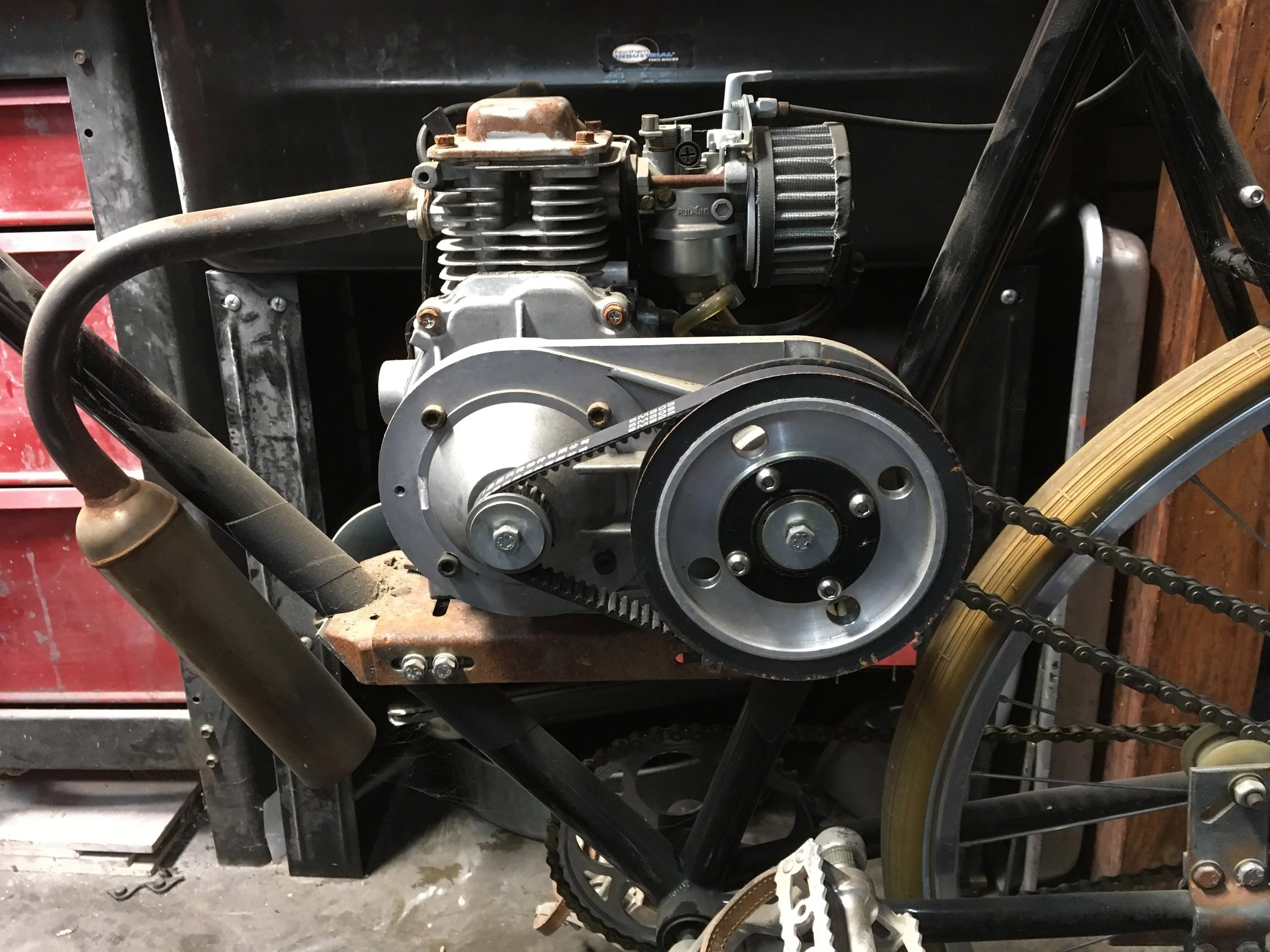 Working on Jason Lee’s motorized bicycle. It needed a basic revival and clean up. Some of the rusted parts were re-plated or painted. This is the before picture.