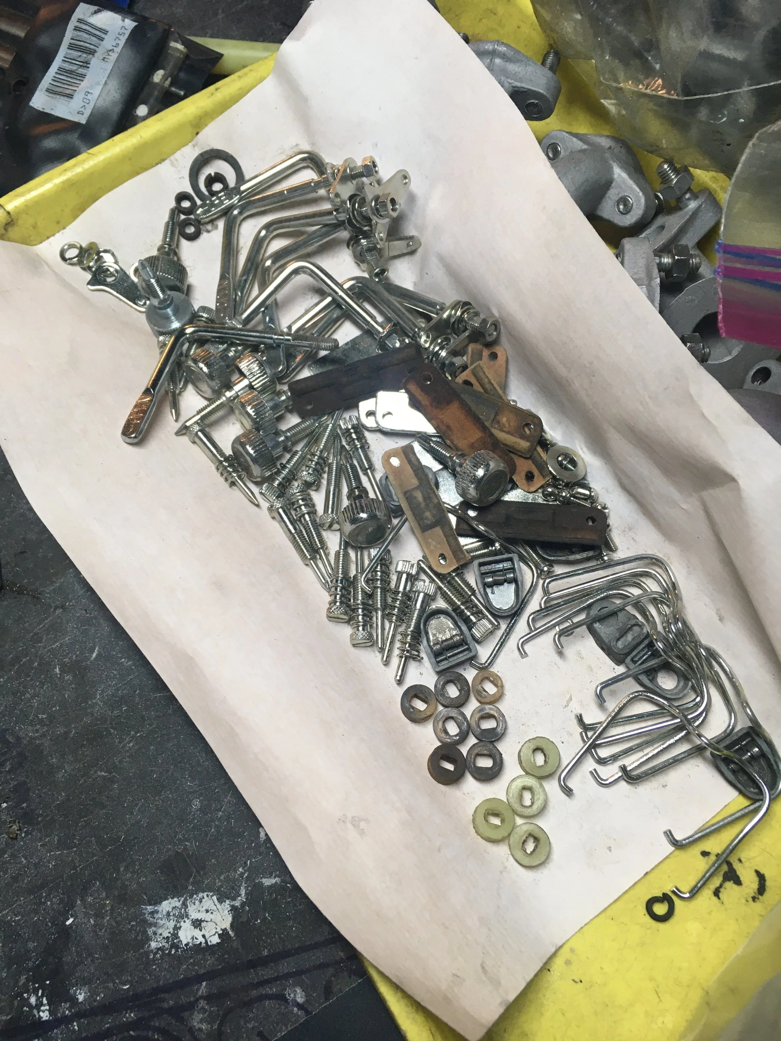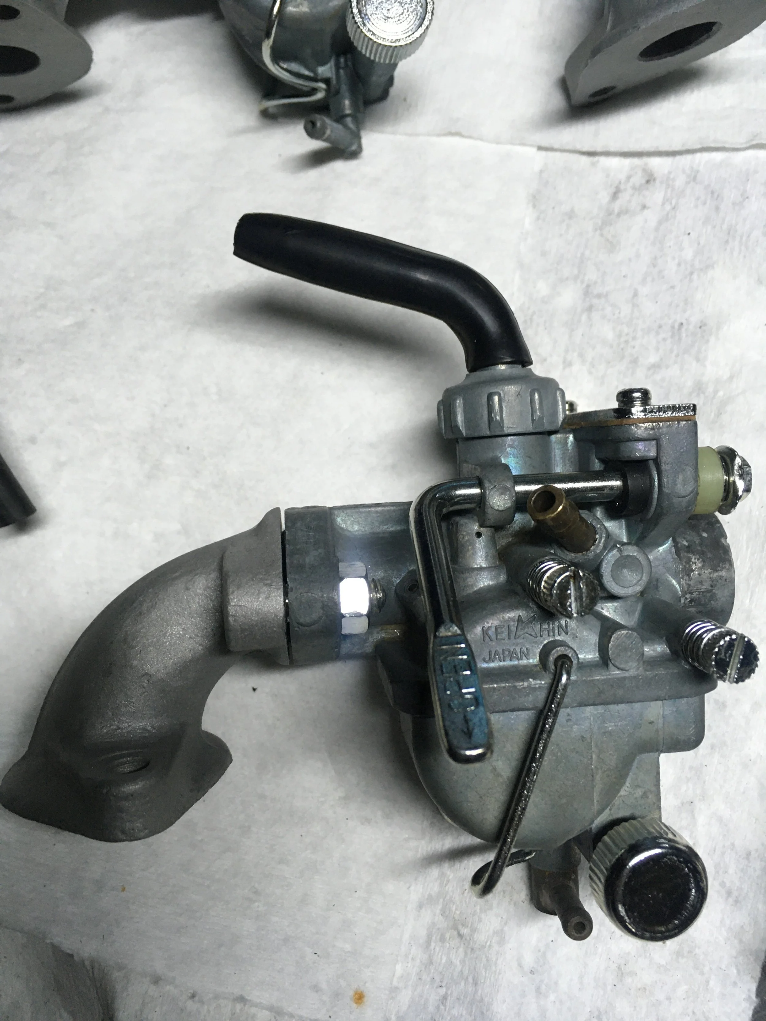 Part of the way through the process. The bodies of the carbs were not refinished aside from the ultrasound cleaning. Some still had a fairly good original surface, but most were in some state of oxidation. Vapor honing gives a beautiful finish, that looks even better than original. That may be the way in the future, but for now, this will do.