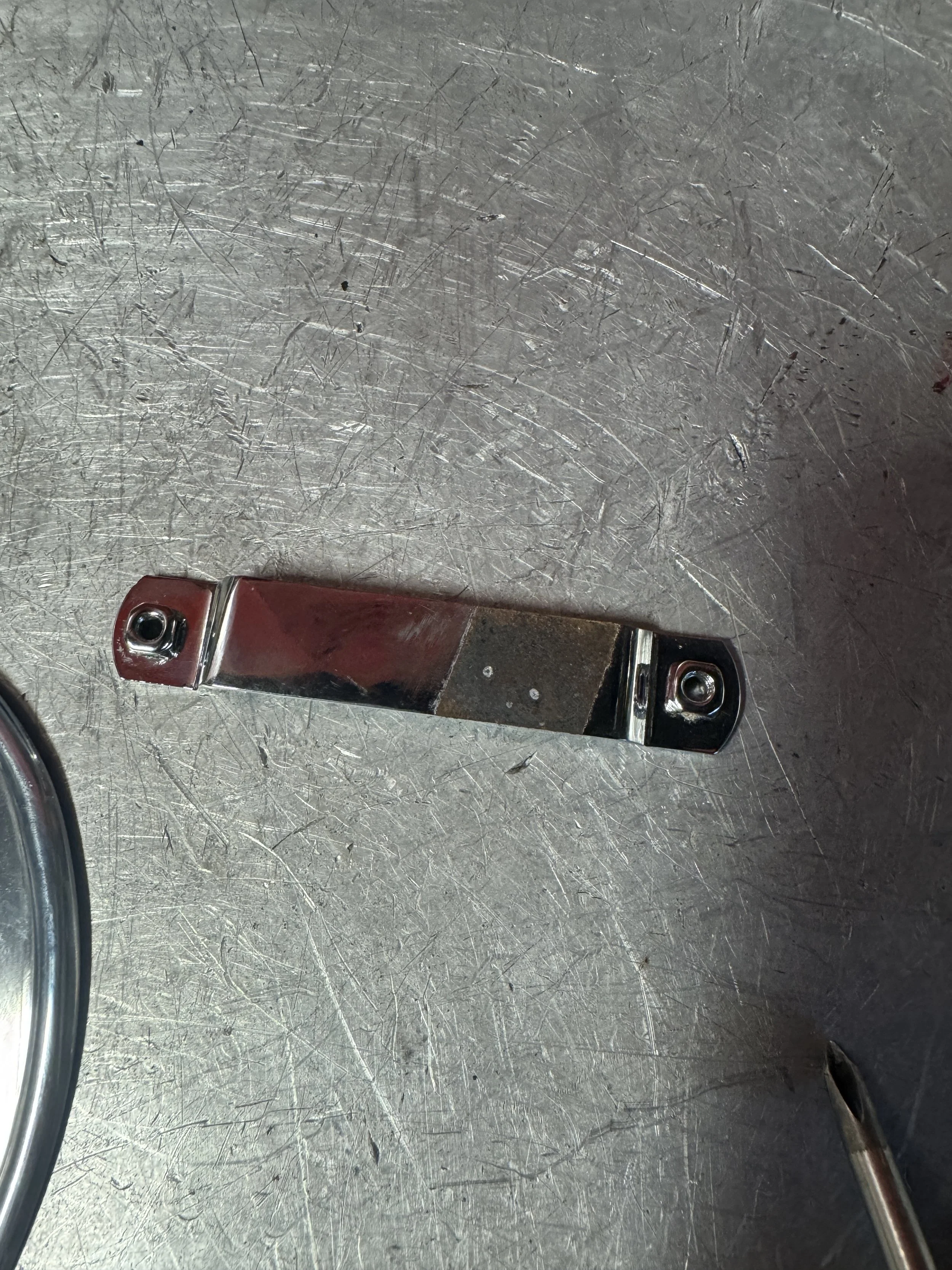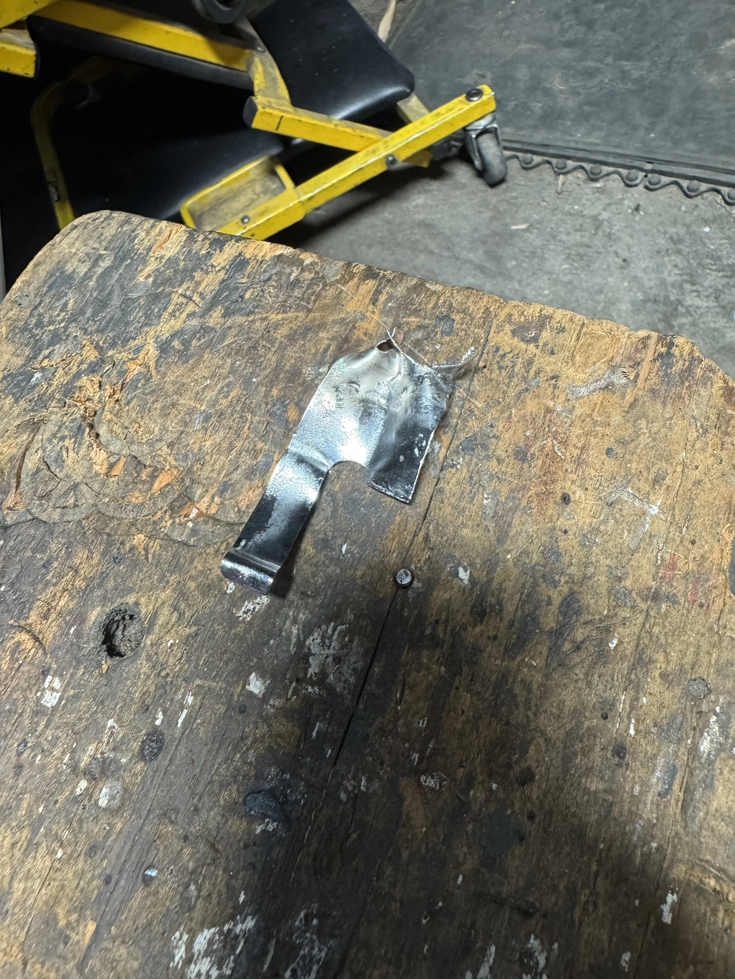 The ripped up bracket after removal.